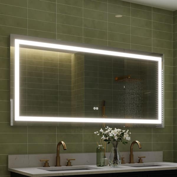 60 in. W x 28 in. H Rectangular Frameless LED Light Anti-Fog Wall Mounted Bathroom Vanity Mirror