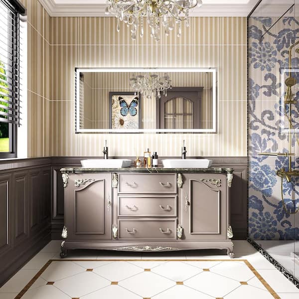 60 in. W x 28 in. H Rectangular Frameless LED Wall Bathroom Vanity Mirror, Tempered Glass