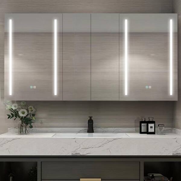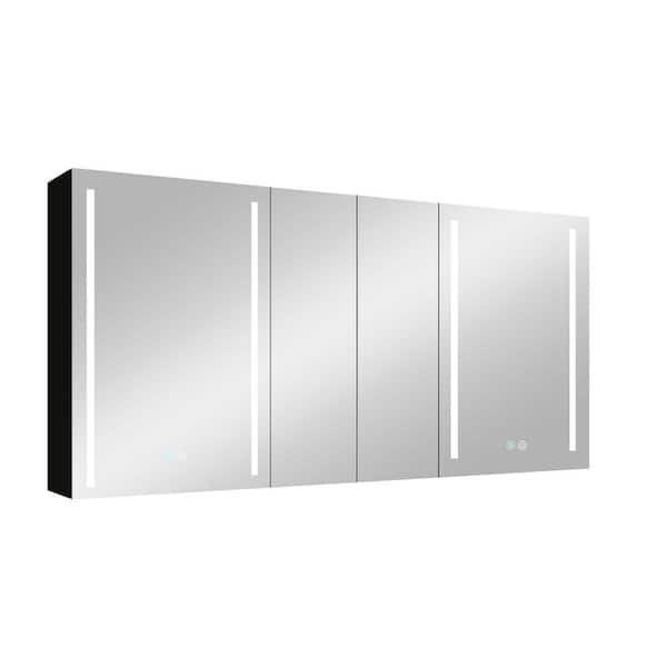 60 in. W x 30 in. H Rectangular Aluminum Black Medicine Cabinet with Mirror and 4-Doors