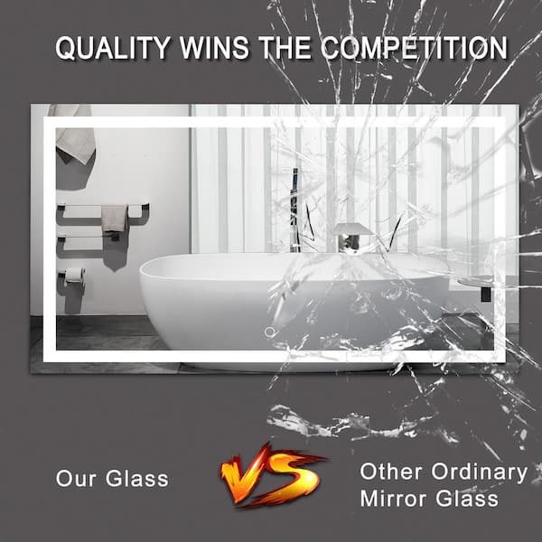 60 in. W x 32 in. H Large Rectangular Frameless Anti-Fog Wall Mounted Bathroom Vanity Mirror with 3-Color in Chrome