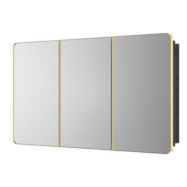 60 in. W x 32 in. H Rectangular Brass Gold Stainless Steels Framed Recessed/Surface Mount Medicine Cabinet with Mirror