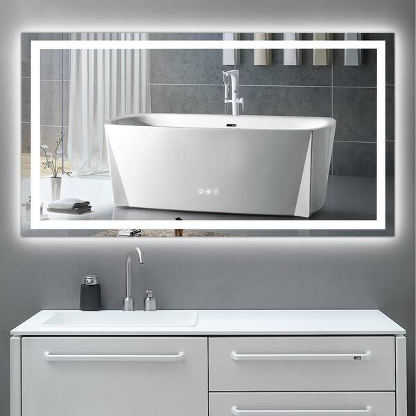 60 in. W x 32 in. H Rectangular Frameless Anti-Fog Wall Mount Bathroom Vanity Mirror in Silver