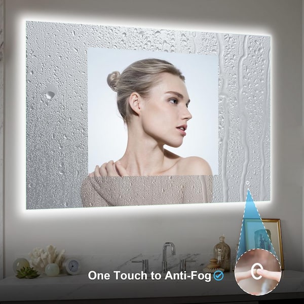 60 in. W x 35.99 in. H Large Rectangular Frameless Wall Mount Anti-Fog Ceiling Bathroom Vanity Mirror in Silver