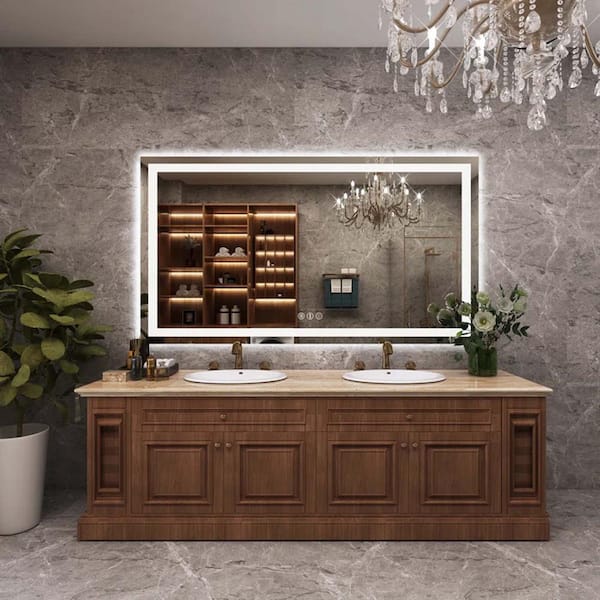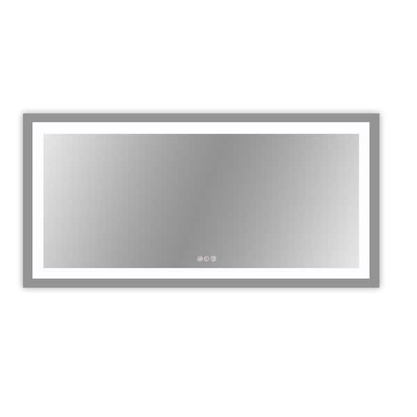 60 in. W x 36 in. H LED Frameless Rectangular White Mirror for Living Room