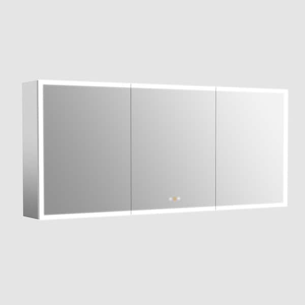 60 in. W x 36 in. H Rectangular Aluminum Big Storage Surface Mount Medicine Cabinet with Mirror in Grey and USB Outlet