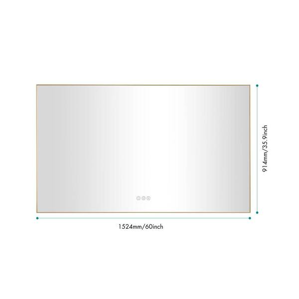 60 in. W x 36 in. H Rectangular Aluminum Framed LED Wall Mount Anti-Fog Modern Decorative Bathroom Vanity Mirror