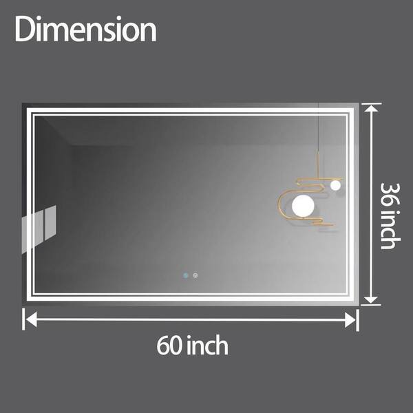60 in. W x 36 in. H Rectangular Frameless Anti-Fog Wall Mounted LED Bathroom Vanity Mirror in Natural