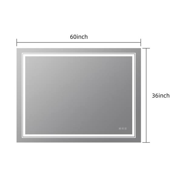 60 in. W x 36 in. H Rectangular Frameless LED Wall Mount Anti-Fog Bathroom Vanity Mirror