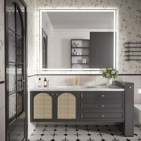 60 in. W x 48 in. H Rectangular Frameless LED Wall Bathroom Vanity Mirror, Tempered Glass