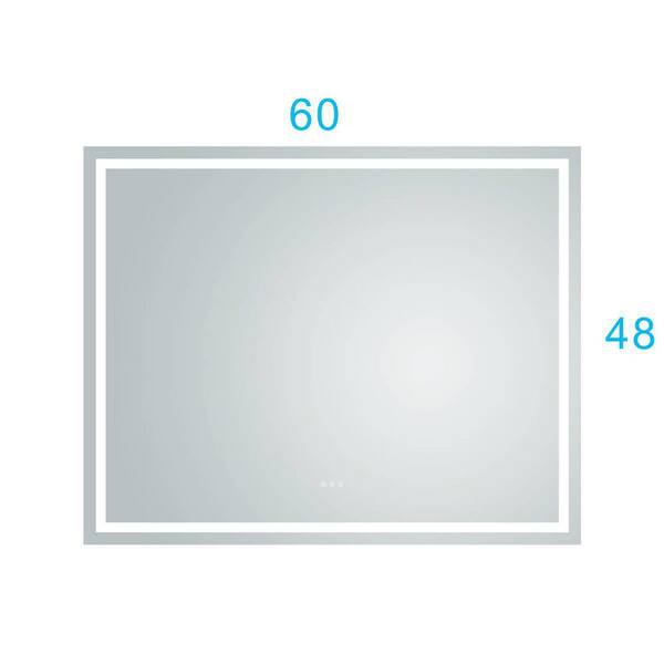60 in. W x 48 in. H Rectangular Frameless LED Wall Mount Anti-Fog Modern Decorative Bathroom Vanity Mirror