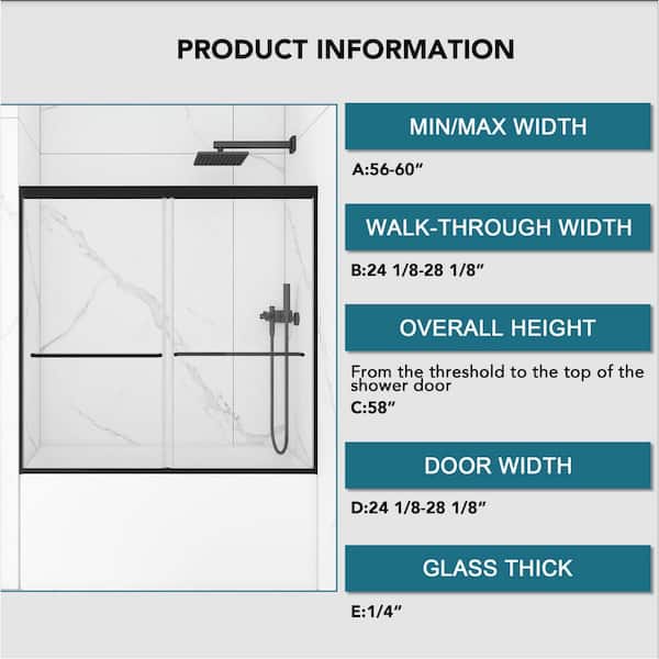 60 in. W x 58 in. H Framed Double Sliding Tub Door in Matte Black with Clear Tempered Glass