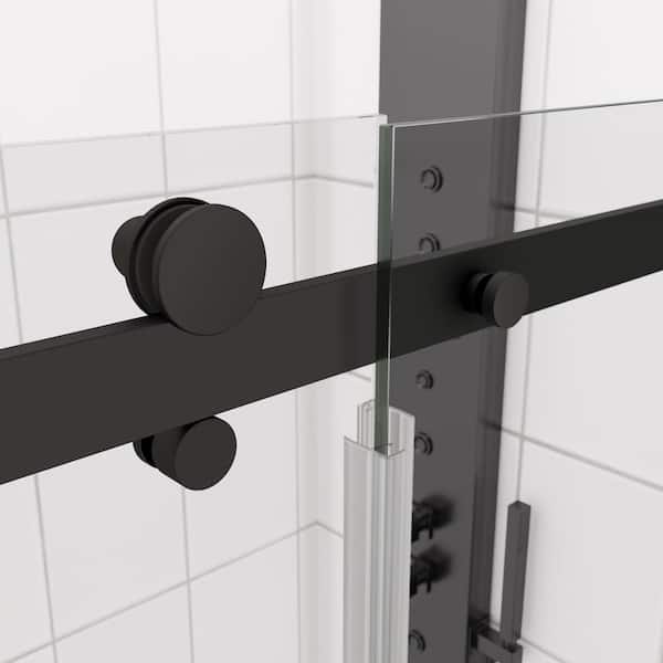 60 in. W x 58 in. H Sliding Tub Door in Matte Black with Clear Glass