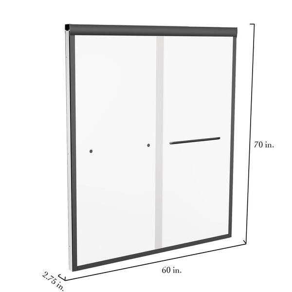 60 in. W x 70 in. H Semi-Frameless Double Sliding shower door in Matte Black with Explosion Proof Film Tempered Glass