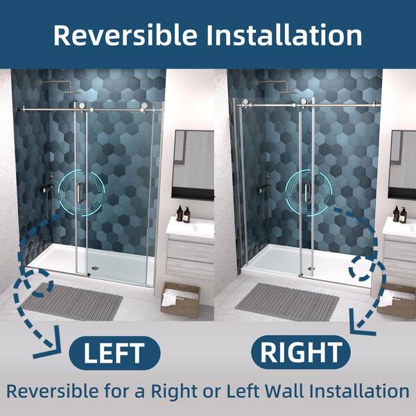 60 in. W x 70 in. H Semi Frameless Sliding Shower Door in Matt Black with Clear Tempered Glass