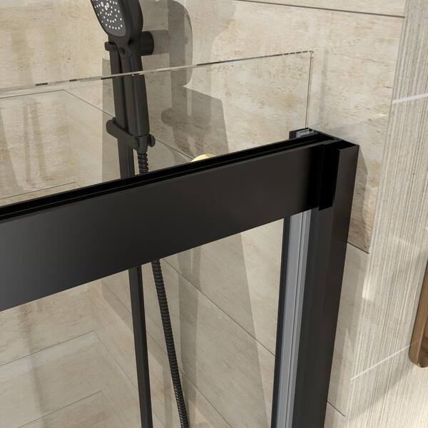 60 in. W x 74 in. H Double Sliding Framed Shower Door in Black Finish with Clear Finish