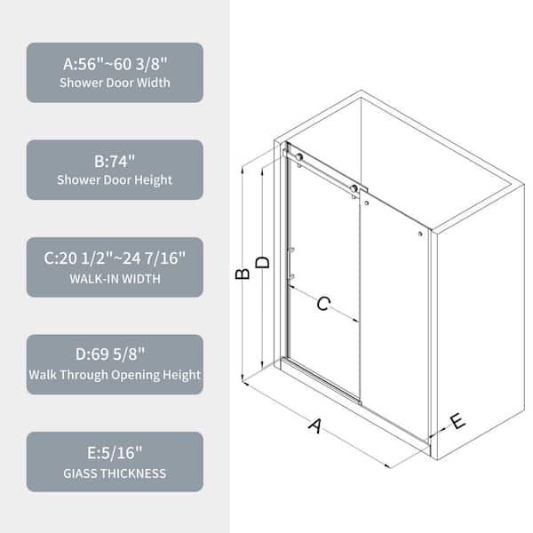 60 in. W x 74 in. H Semi-Frameless Sliding Shower Door in Matt Black with Clear Tempered Glass
