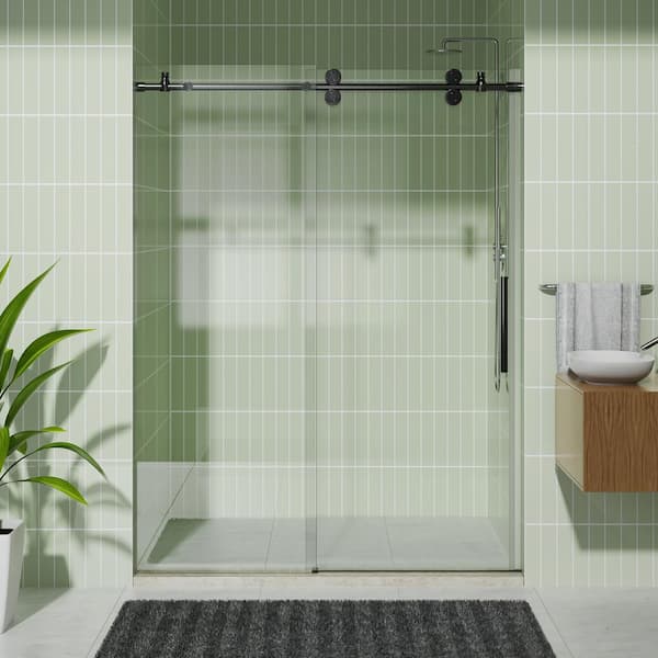 60 in. W x 74 in. H Sliding Frameless Shower Door in Matte Black with 5/16 in. (8 mm) Clear Glass