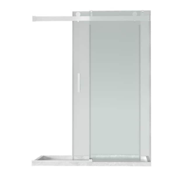 60 in. W x 76 in. H Single Sliding Frameless Shower Door in Brushed Nickel Finish with Clear Glass