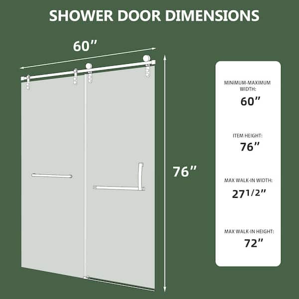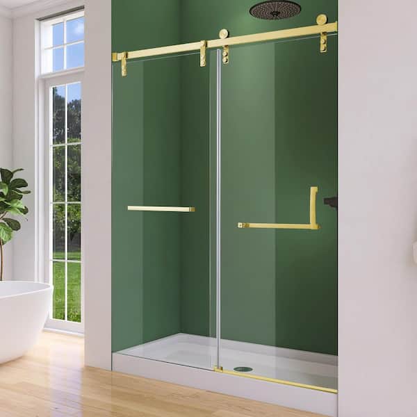 60 in. W x 76 in. H Single Sliding Frameless Shower Door in Gold With 0.31 in. Tempered Clear Glass and Soft Close
