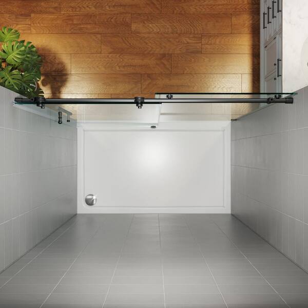 60 in. W x 76 in. H Sliding Frameless Shower Door in Black Finish with 3/8 in. Clear Glass