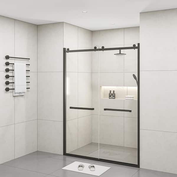 60 in. W x 76 in. H Sliding Semi-Frameless Shower Door in Matte Black Finish with Clear Glass