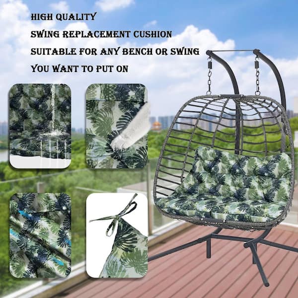 60 in. x 40 in. 3-Seater Replacement Outdoor Swing Cushions with Back Support, Waterproof Bench Cushion Palm Leaves