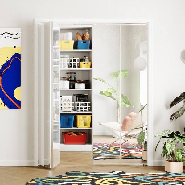 60 in. x 80 in. Mirrored Glass, Silver, Hollow Core, MDF, Aluminum Frame, Full Lite Bi-fold Doors with Hardware Kits