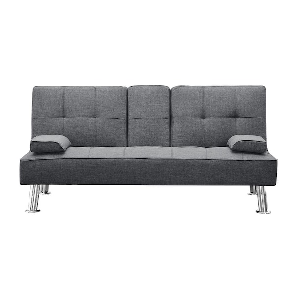 61.42 in. Gray Modern Fabric Loveseat Twin Sofa Bed with Cup Holders and Removable Armrests