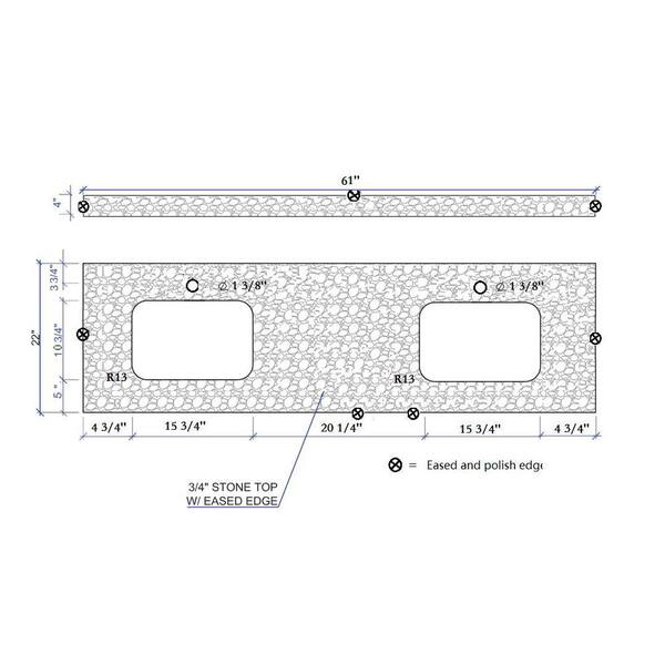 61 in. W x 22 in. D Engineered Stone Composite Vanity Top in Carrara White with White Rectangular Double Sink
