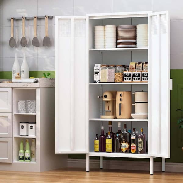 61 in. White Meatl Kitchen Pantry Cabinet with Adjustable Shelves, Freestanding Storage Cabinet Cupboard Kitchen Hutch
