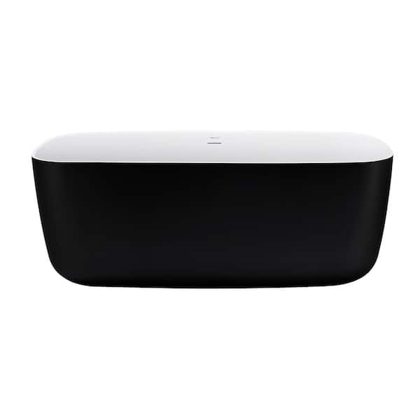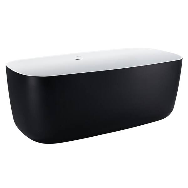 62.4 in. Acrylic Freestanding Flatbottom Soaking Bathtub in Matte Black with Brass Drain and Overflow