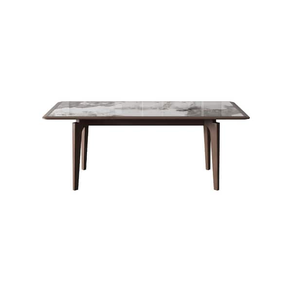 62.9 in. Rectangle White Stone Top Dining Table with Wood Frame