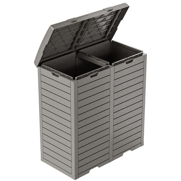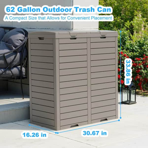 62 Gal. Brown Dual PP Resin Hideaway with Lid and Drip Tray Trash Can Storage