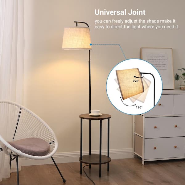 62 in. Rough Black 1-Light Tray Table Column Floor Lamp for Living Room with Fabric Beige Drum Shade