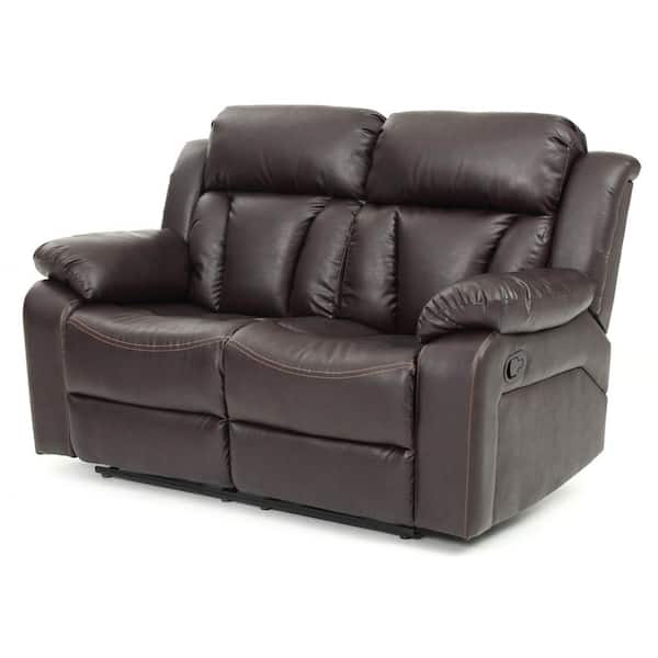 62 in. W 2 Seats Padded Flared Arm Faux Leather Rectangle Modern Handle Mechanism Reclining Loveseat in Dark Brown