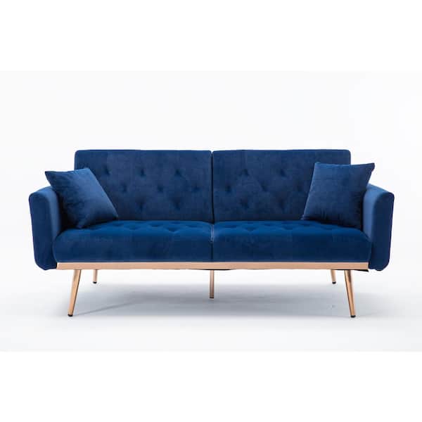63.78 in. Navy 2-Seater Loveseat with Rose Gold Metal Feet
