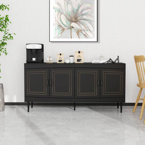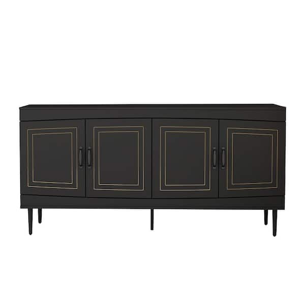 63 in. W x 15.75 in. D x 31.1 in. H Black Linen Cabinet with Adjustable Shelves, Modern 4-Door