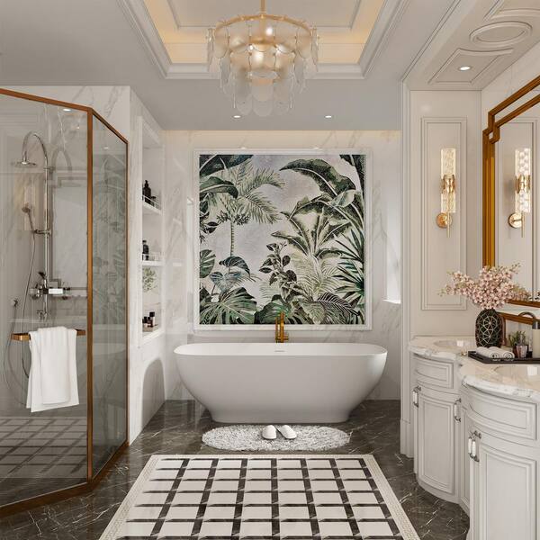 63 in. x 30 in. Solid Surface Freestanding Soaking Bathtub in Matte White with Center Drain and Abrasive Pads