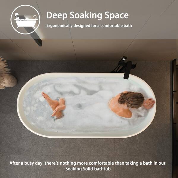 63 in. x 30 in. Stone Resin Freestanding Soaking Bathtub with Center Drain in Matte White