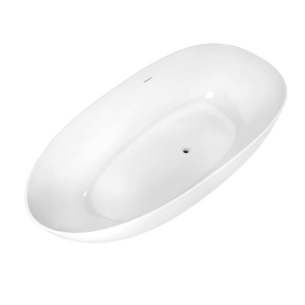 63 in. x 31.5 in. Stone Resin Solid Surface Freestanding Soaking Bathtub Tub with Center Drain in Glossy White