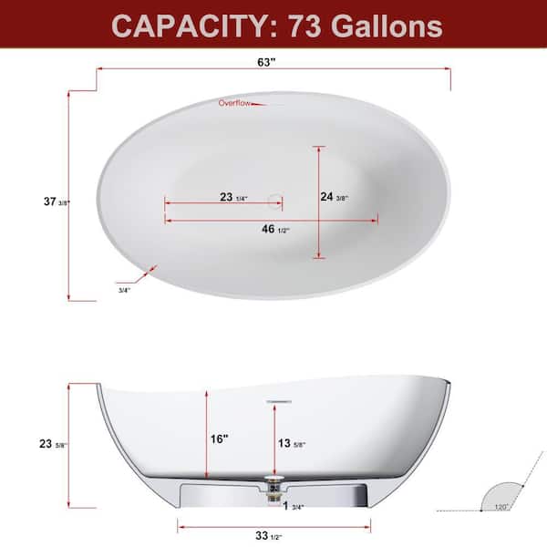 63 in. x 37.5 in. Matte Soaking Bathtub with Chrome Overflow in White cUPC Certified