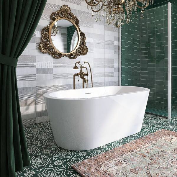 64.5 in. x 31 in. Acrylic Freestanding Flatbottom Soaking Bathtub in White