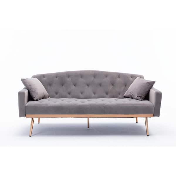 65.3 in. Grey Velvet 2-Seats Sofa Bed Loveseats with Stainless Feet