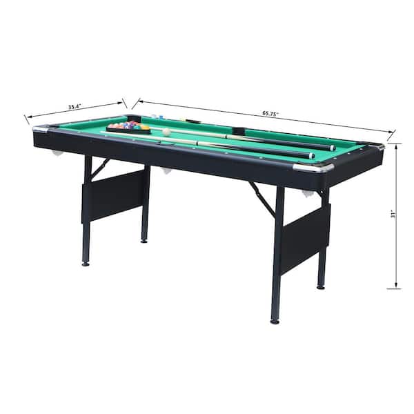65.75 in. Foldable Green Velvet Cloth Pool Table with Steel Frame and Accessories