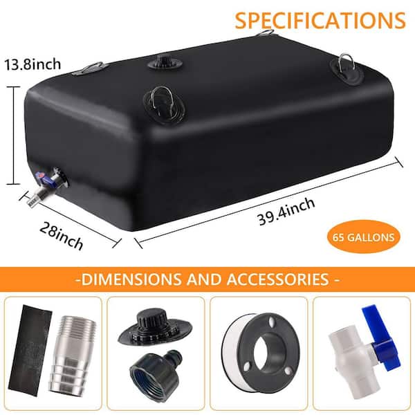 65 Gal. Foldable Portable Water Storage, Large Water Storage Containers with 3/4 in. PVC Spigot and Overflow Kit, 1-Pack