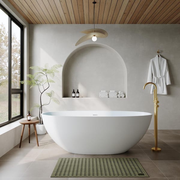 65 in. Stone Resin Solid Surface Matte Flatbottom Freestanding Bathtub in White