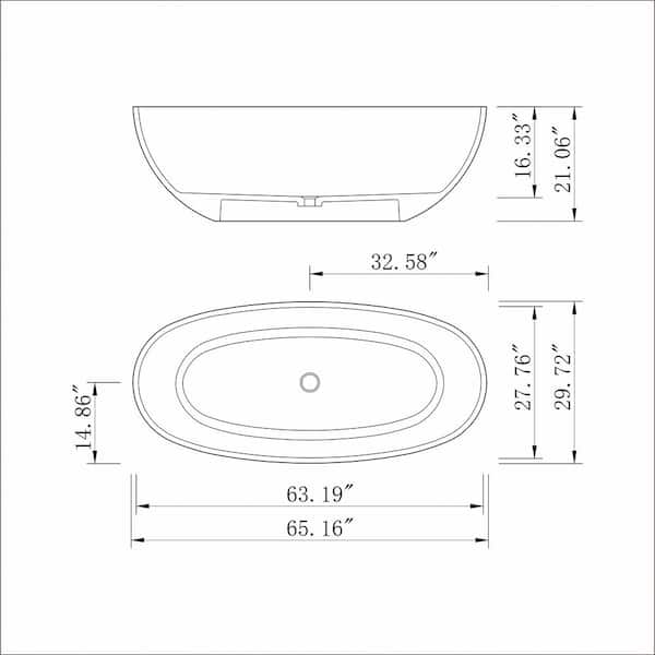 65 in. x 33.3 in. Stone Resin Oval Soaking Bathtub with Center Drain in Blue