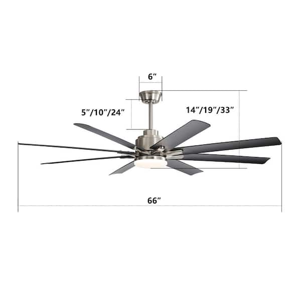 66 in. Integrated LED Indoor Black Silver Ceiling Fan Lighting with 8 Reverslble Blades and Intelligent Voice Control