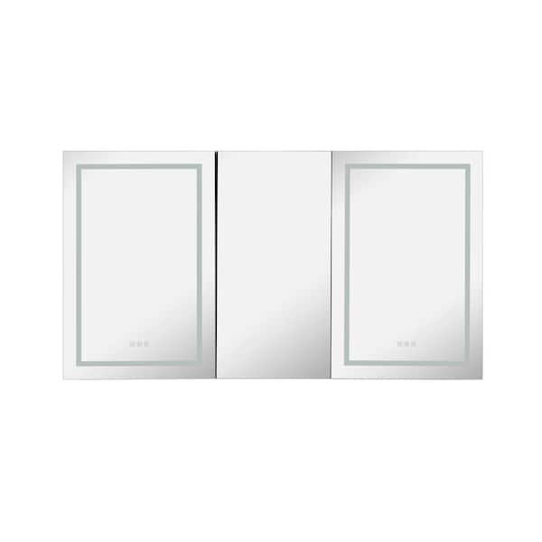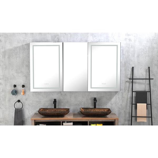 66 in. W x 36 in. H Large Rectangular Black Aluminum Surface Mount Medicine Cabinet with Mirror, LED, Defogger