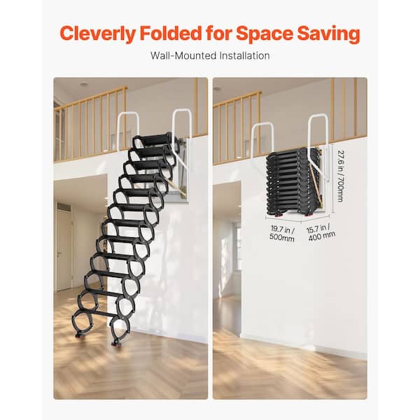 660 lb. Capacity Wall-Mounted Attic Ladder, 12-Step Steel Folding Stairs with Handrails, Fits 9.5-10 ft. Ceilings